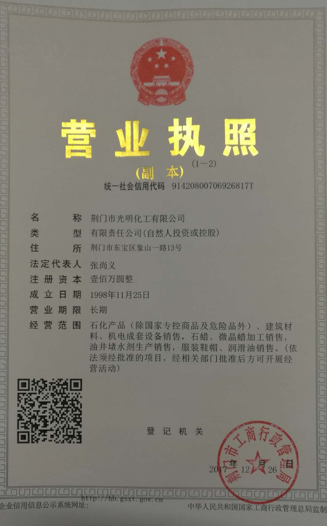 © 2014荊門市光明化工有限公司 版權(quán)所有     電話:13908690979   地址 : 荊門市象山一路18號   未經(jīng)許可不得復(fù)制轉(zhuǎn)載   備案號:  鄂ICP備18000091號-1 荊門百捷 技術(shù)支持